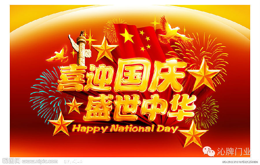平淡的辞藻,堆砌祝福的美好;不需多思考,真心的问候送到。国庆佳节,愿快乐为你笑弯腰,钞票直向你奔跑,幸福不离分分秒,吃好玩好休息好! 沁牌门业祝大家国庆节快乐! |